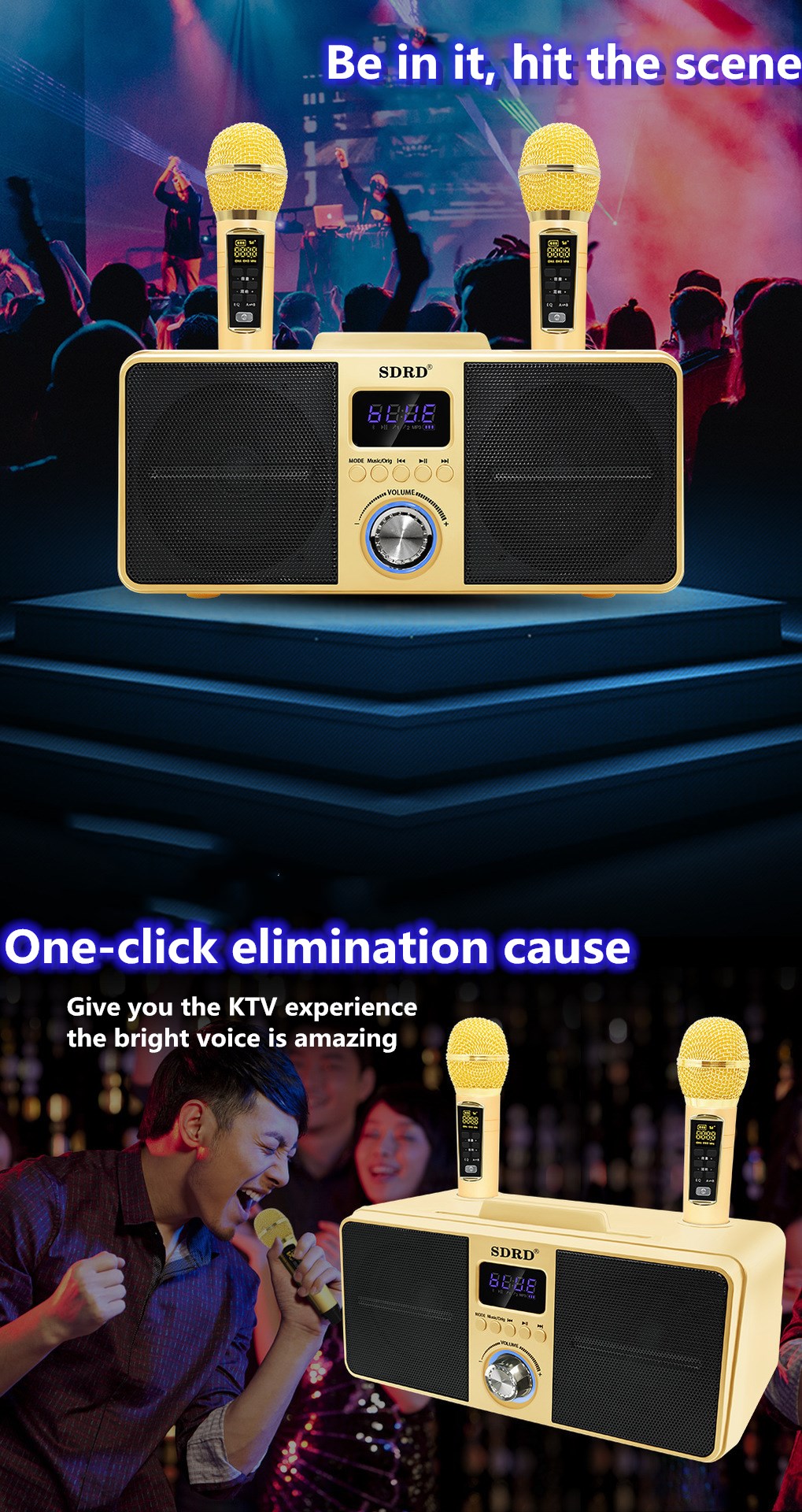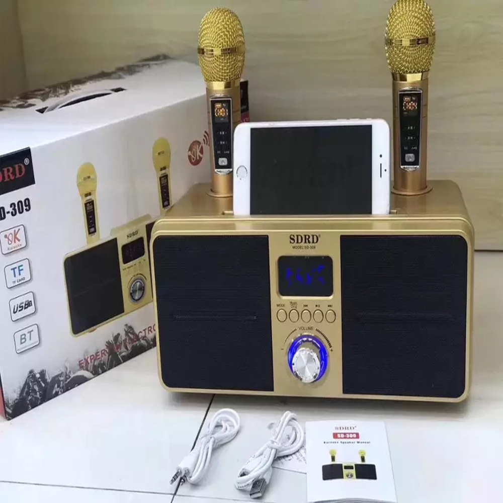 【Singapore Supplier】SD309 HOME KTV Dual Wireless Microphone Bluetooth Wireless Stereo All-in-one Speaker Mobile Wireless Karaoke Speaker 30W SDRD Speaker Set Support Wireless Recording Connection to T