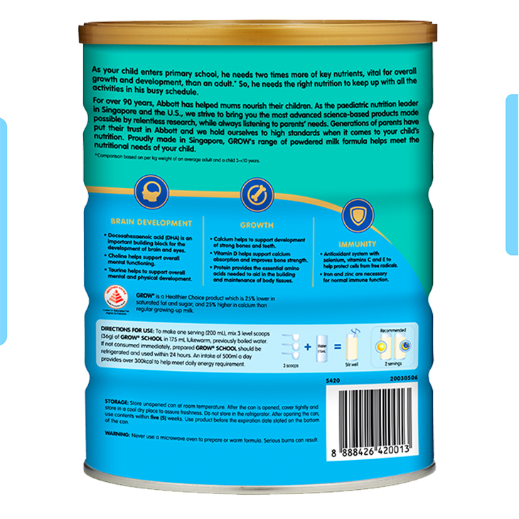 [Bundle of 2] GROW Growing Up Milk for Kids - School Stage 5 (6 - 12 years) - 900g