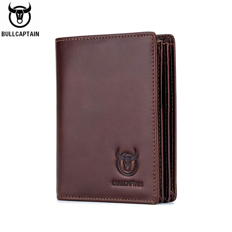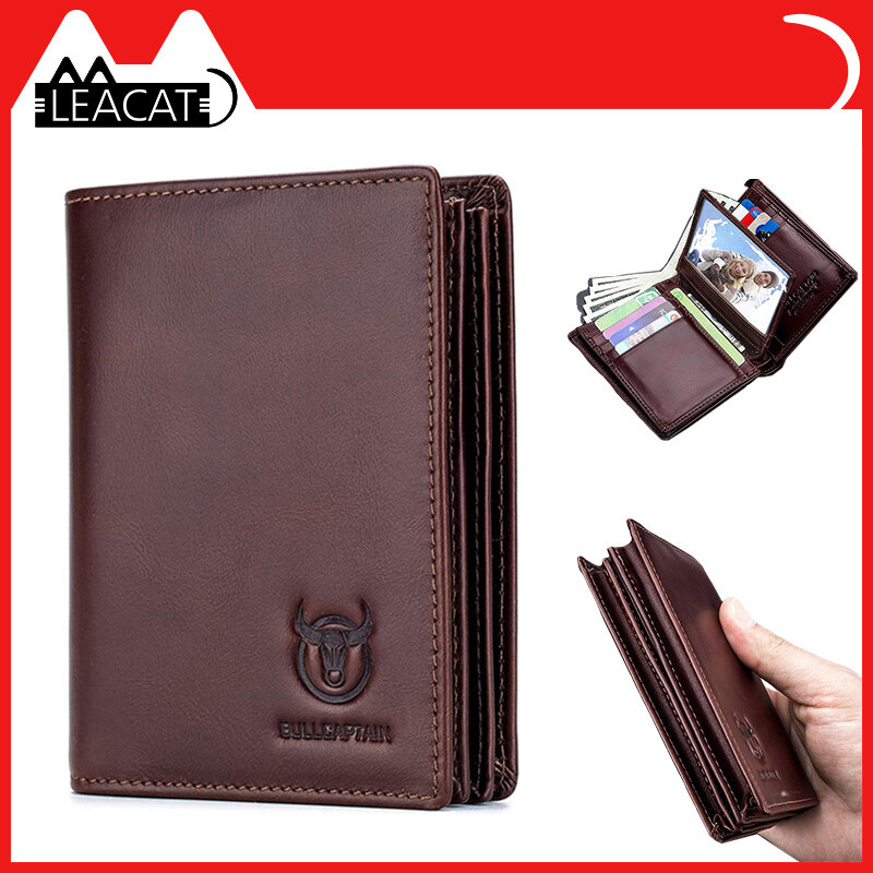 Leacat BULLCAPTAIN new RFID men's leather wallet short vertical locomotive British leisure multi-function card package leather wallet