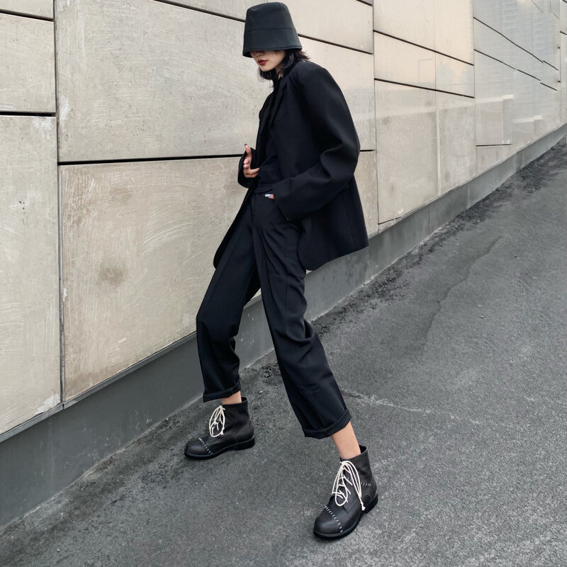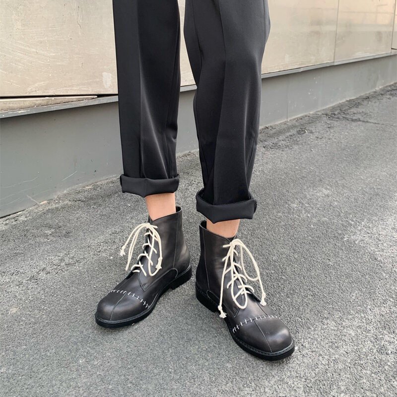 Cut Light Black Working Wear Dr. Martens Boots Women's Spring and Autumn Boots Designer Genuine Leather Flat Bottom England Style Retro Lace up Short Boots Tide