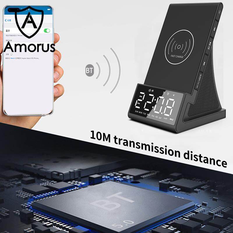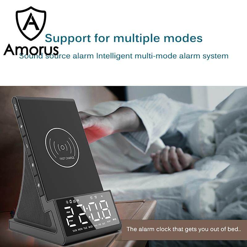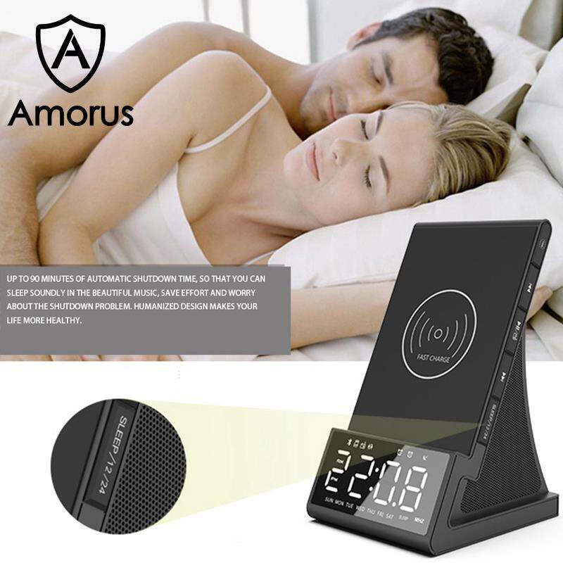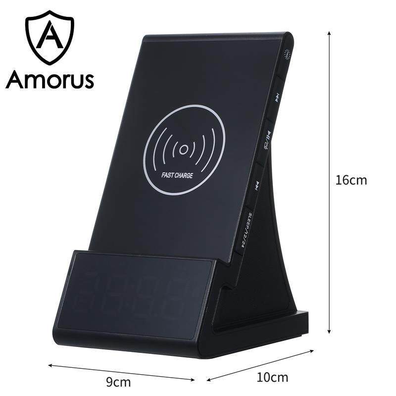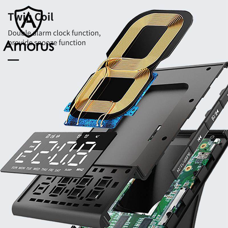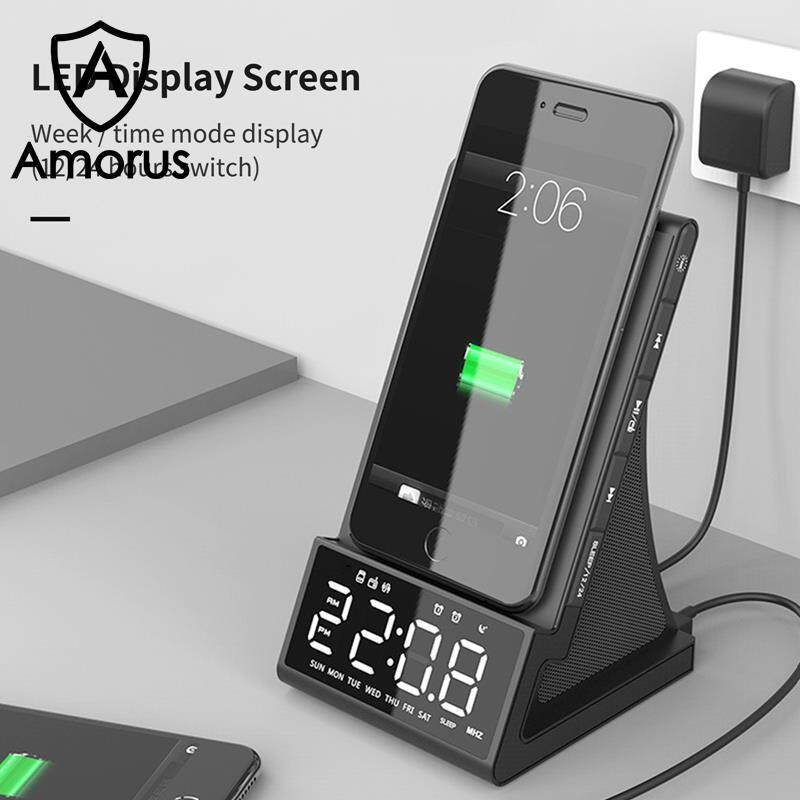 Amorus Bedside Radio Alarm Clock with USB Charger Bluetooth Speaker QI Wireless Charging LED Display