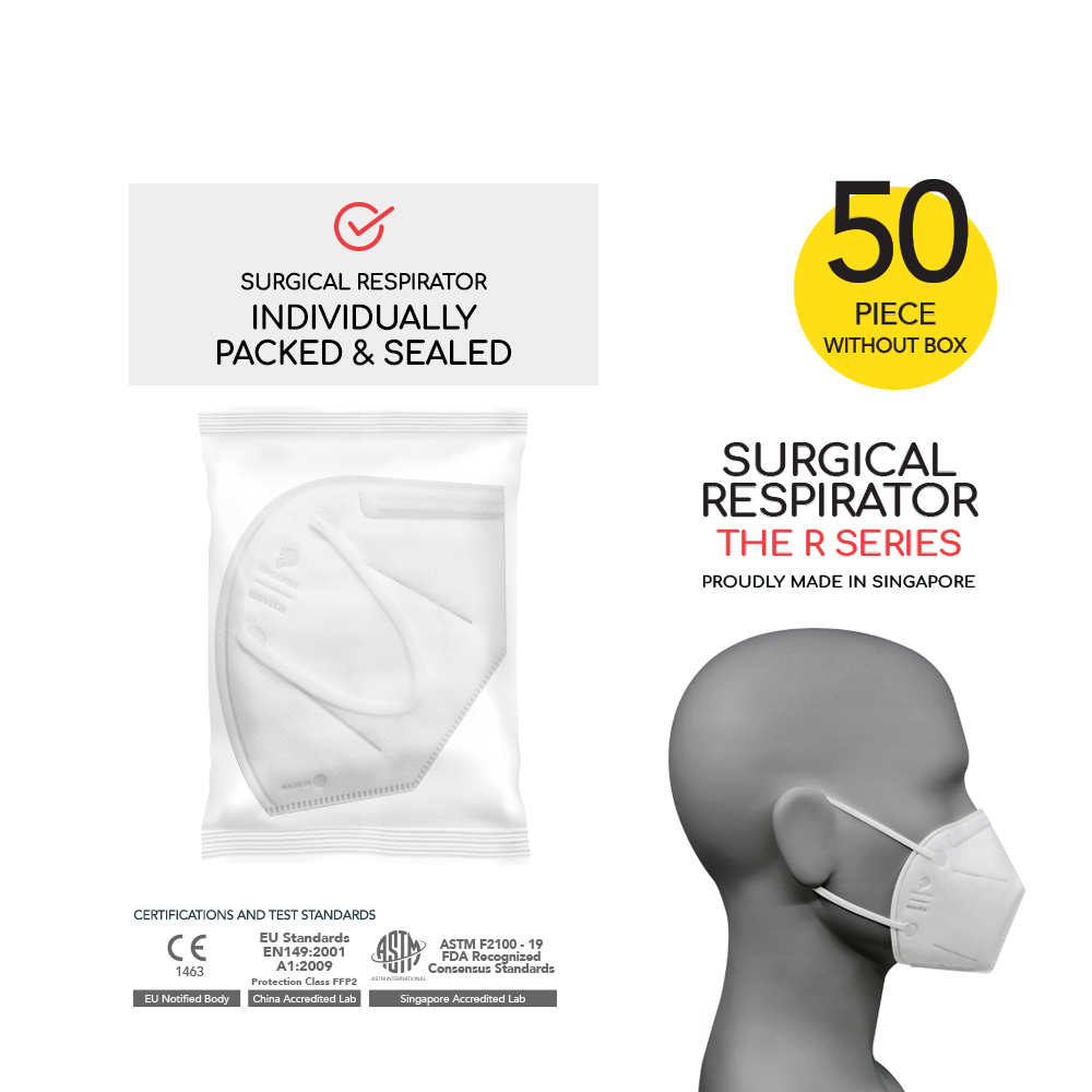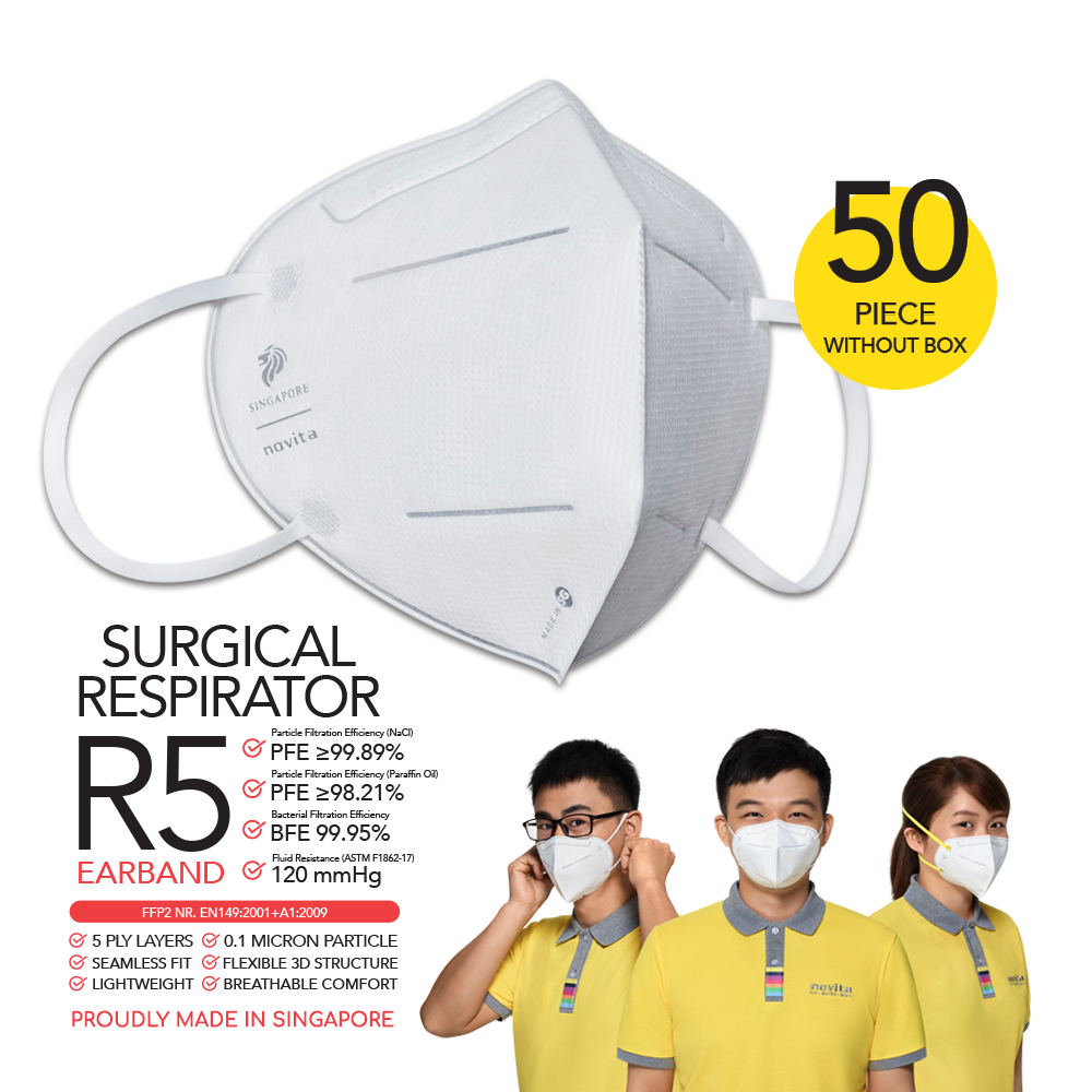 [50pcs WITHOUT box] 5-Ply | Made in Singapore | CE 1463 | FFP2 NR | novita Surgical Respirator R5 Earband
