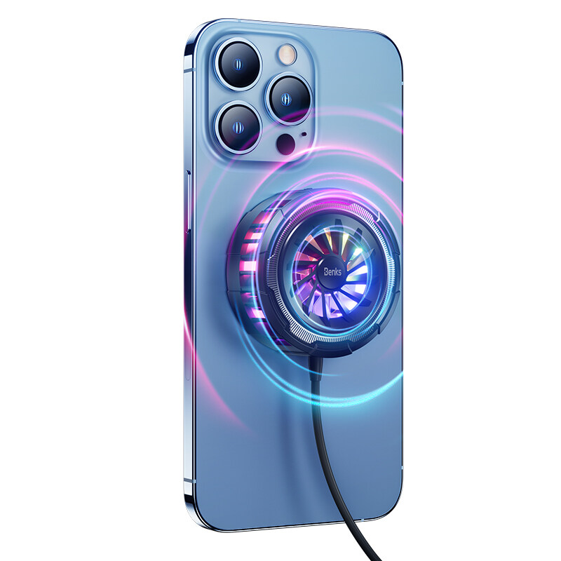 Benks W07 For iPhone 12 13 Mini Pro Max Heat Sink Cooling Magnetic Wireless Charger Radiator Cooler LED Colorful Lights Refrigeration PUBG Game Fan