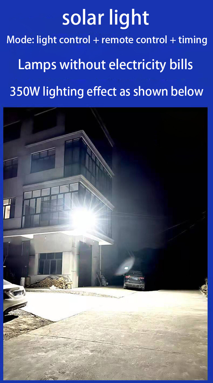 350W: Solar panel: 350*350mmThe lamp body: 321 * 263 mmBattery capacity: 30000mah Lighting duration: 8-24 hours