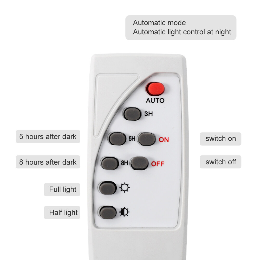 Remote control: Yes,Automatic charging during the day, automatic light in the dark (can use the remote control switch)
