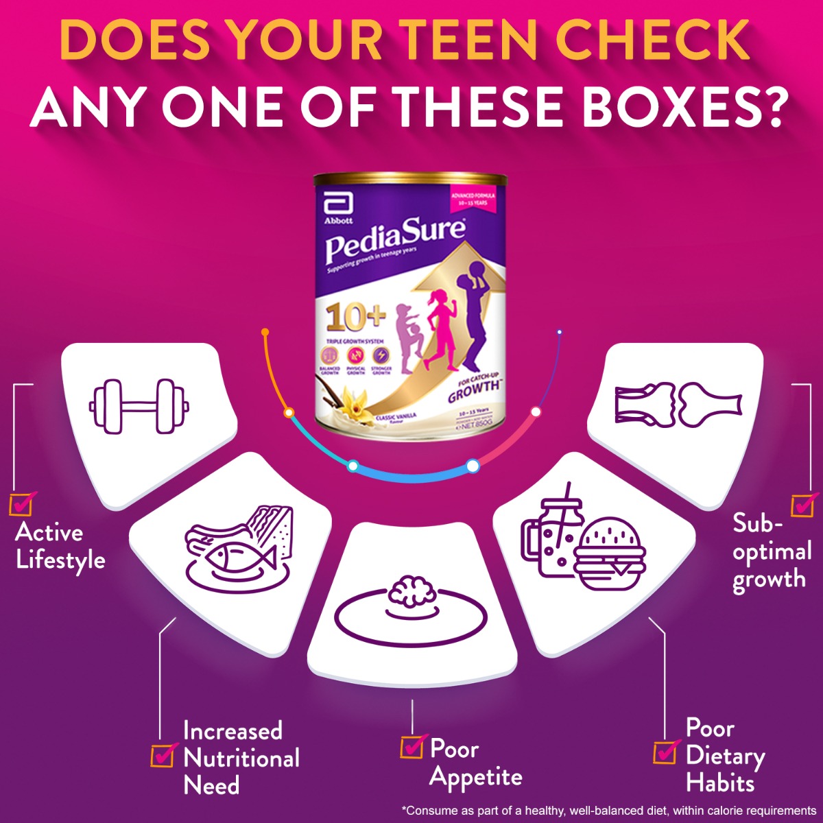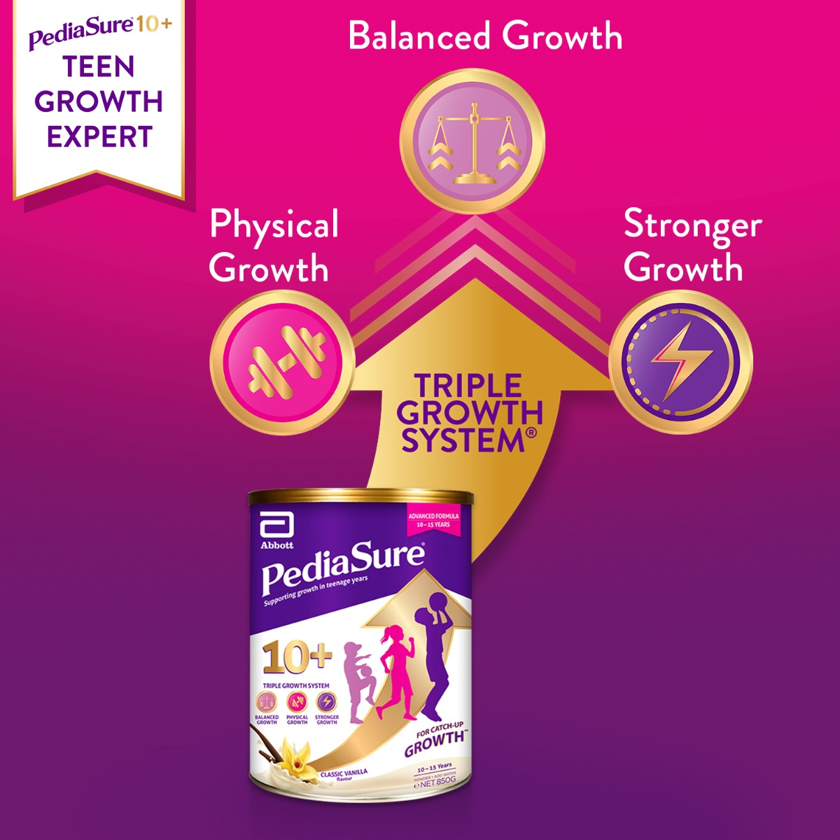 [Bundle of 2] PediaSure 10+ Vanilla Powder, 850g