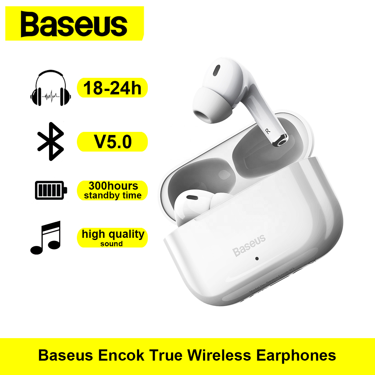 Baseus W3 TWS 5.0 Wireless Earphone In-ear HD Earbuds Touch Control Headset Earphone IPX5 Waterproof Sports Earphones