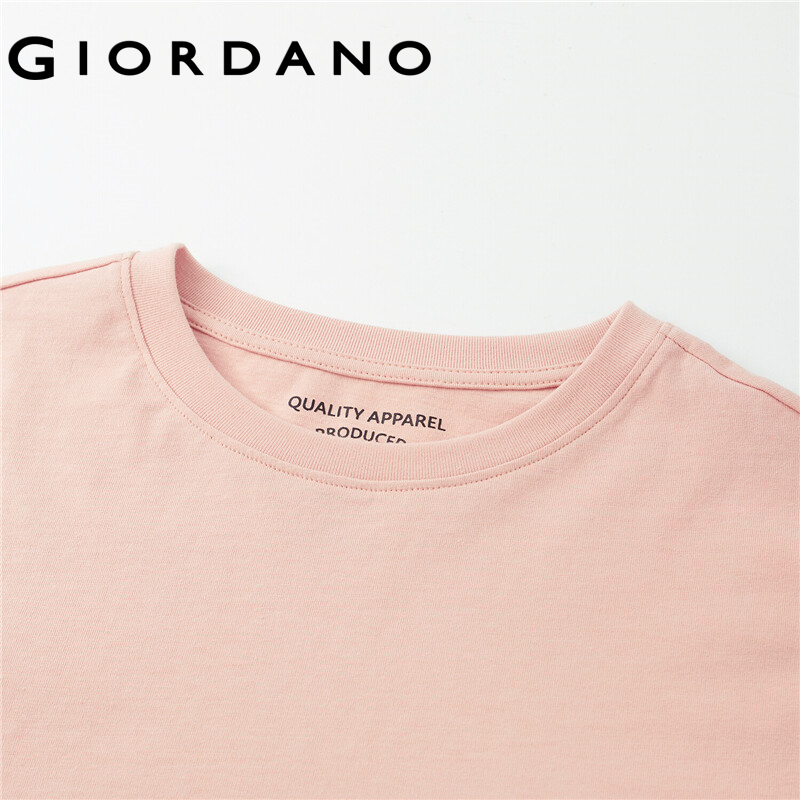 GIORDANO Women T-Shirts Long Design Solid Color Casual T-Shirts Crewneck 100% Cotton Short Sleeve Summer Relaxed Tops 05322386