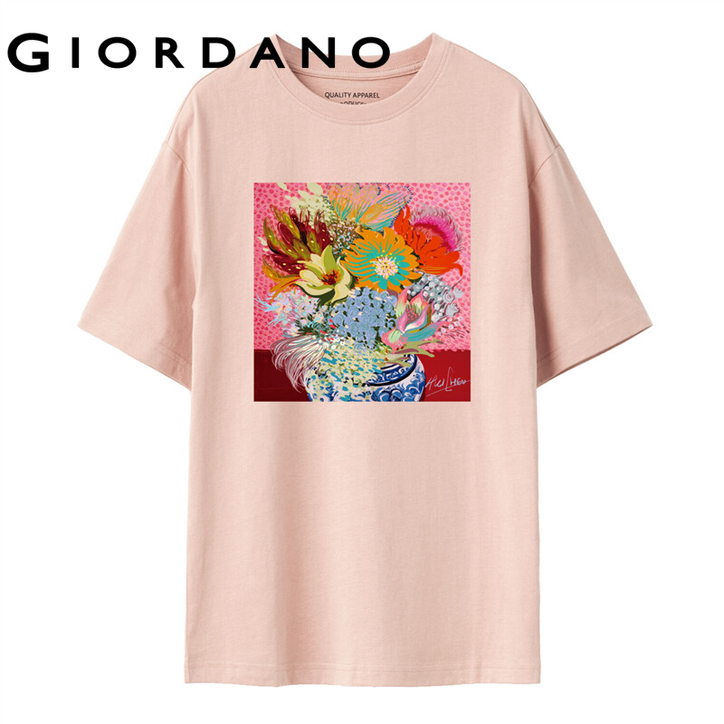 GIORDANO ChenHui Series Women T-Shirts 100% Cotton Printed Graphic T-Shirts Crewneck Simple Basic Summer Comfy T-Shirts 99391179