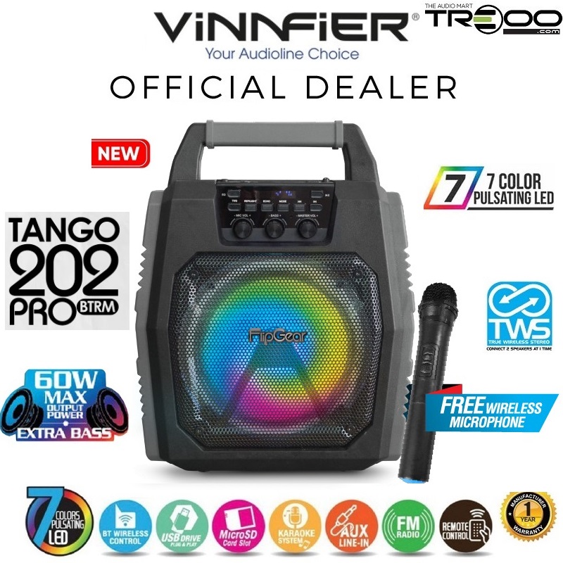 Vinnfier FlipGear Tango 202 PRO BTRM Wireless Bluetooth Portable Speaker with Wireless Handheld Microphone