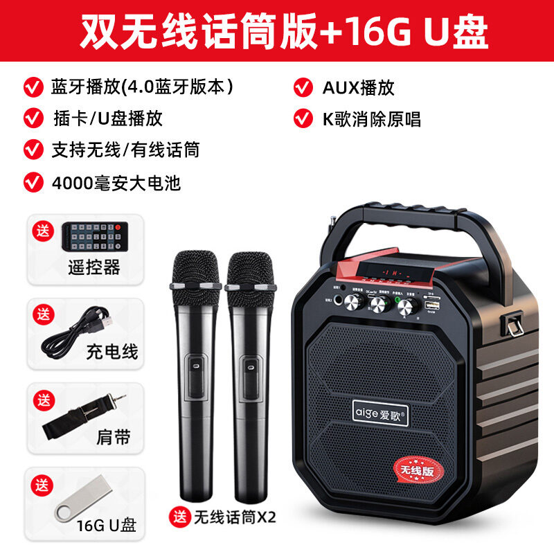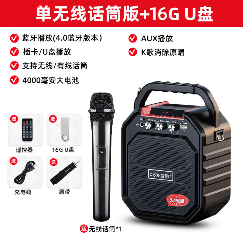 Aige S28 Outdoor Square Dance Audio Large Volume Wireless Bluetooth Microphone Karaoke Portable Speaker Singing Effect