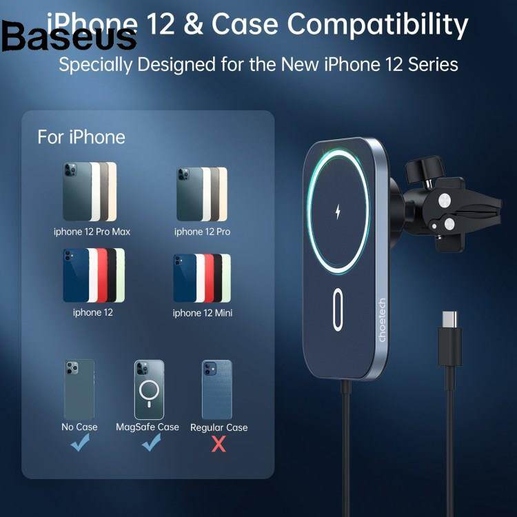 Baseus CHOETECH T200-F 15W Magnetic Wireless Charger Bracket Air Vent Clip Mount Car Phone Holder
