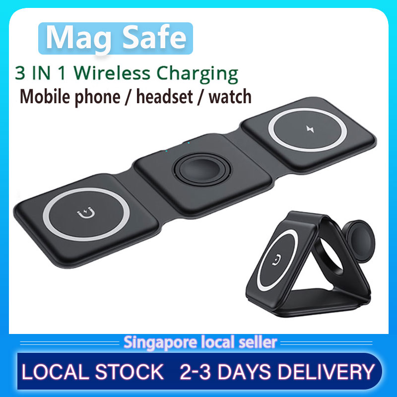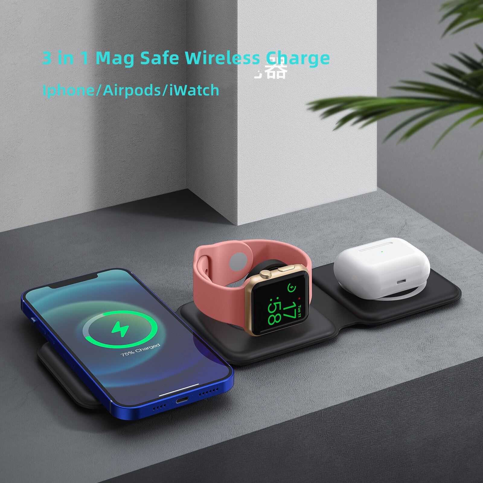 3 in 1 Mag Safe Dock Station For Apple 13/12/11 Airpods 3/2 Iwatch 7/6/5/4/3 Magnet Wireless Charger With Led Light