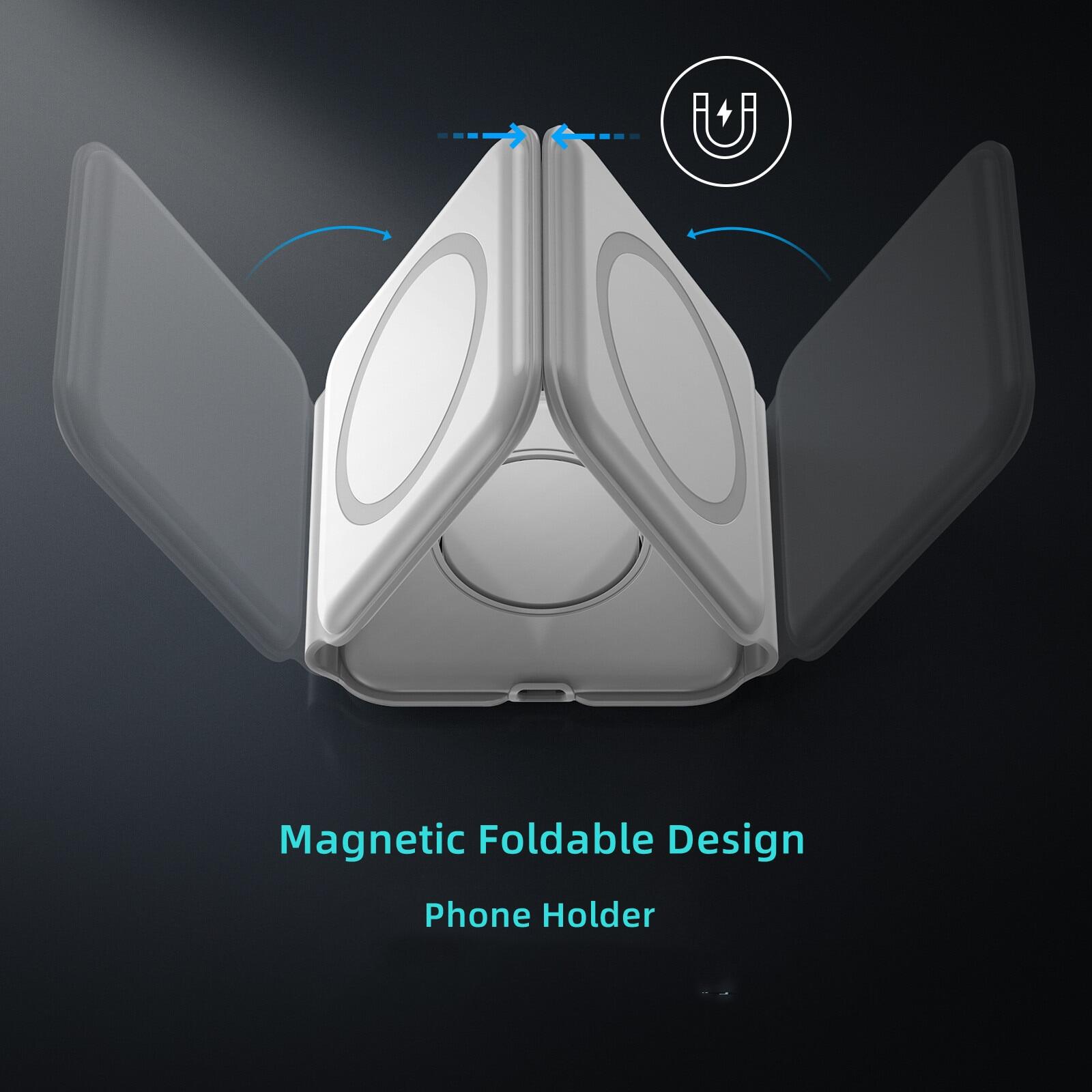 Powerful magnetic fixed, and the charging base with anti-slip silicone design so that the charger will not move or flip, to ensure that your phone is protected when charging. 3&1 wireless charger supports vertical or horizontal wireless charging with a tilt angle design for better viewing of video or tracking information while charging.