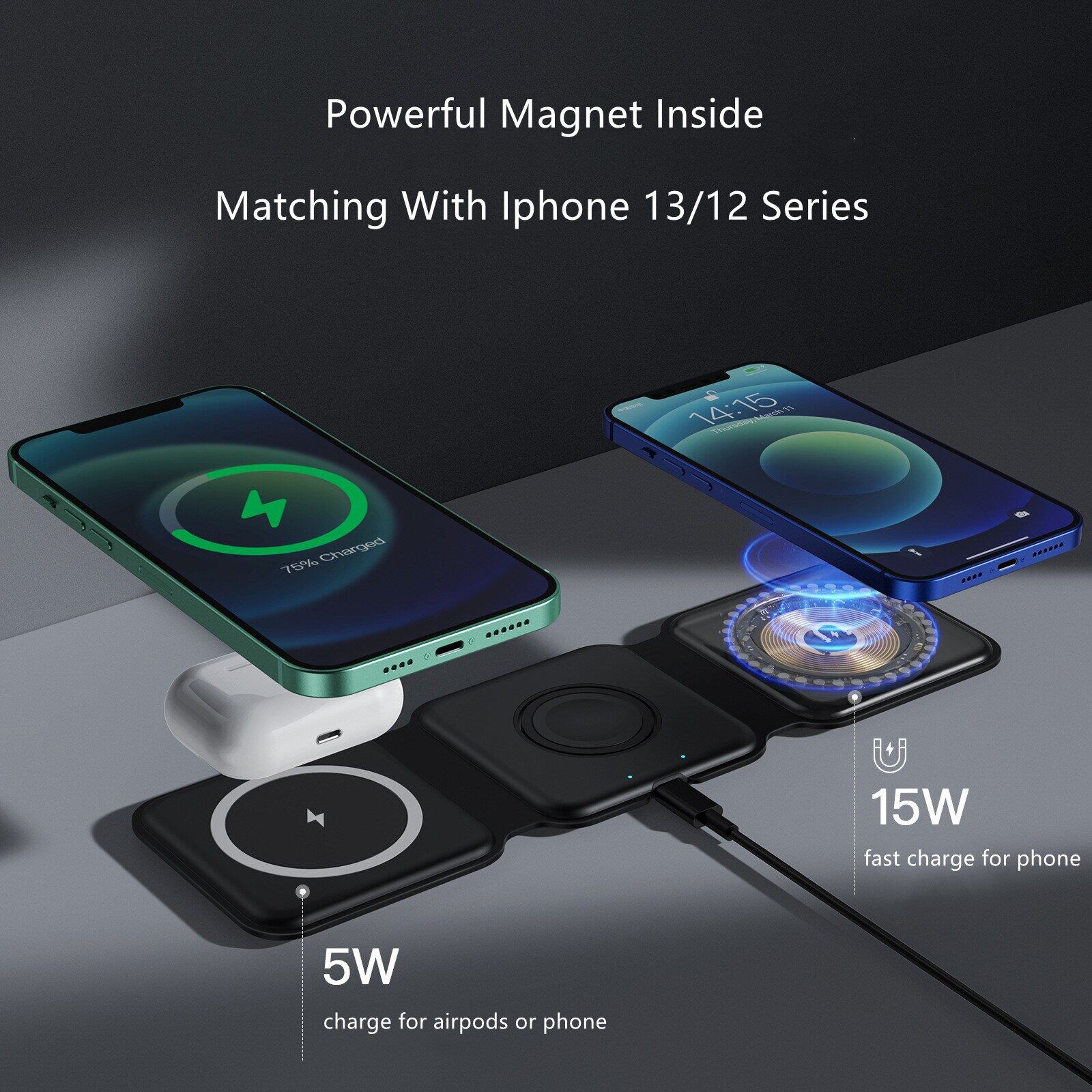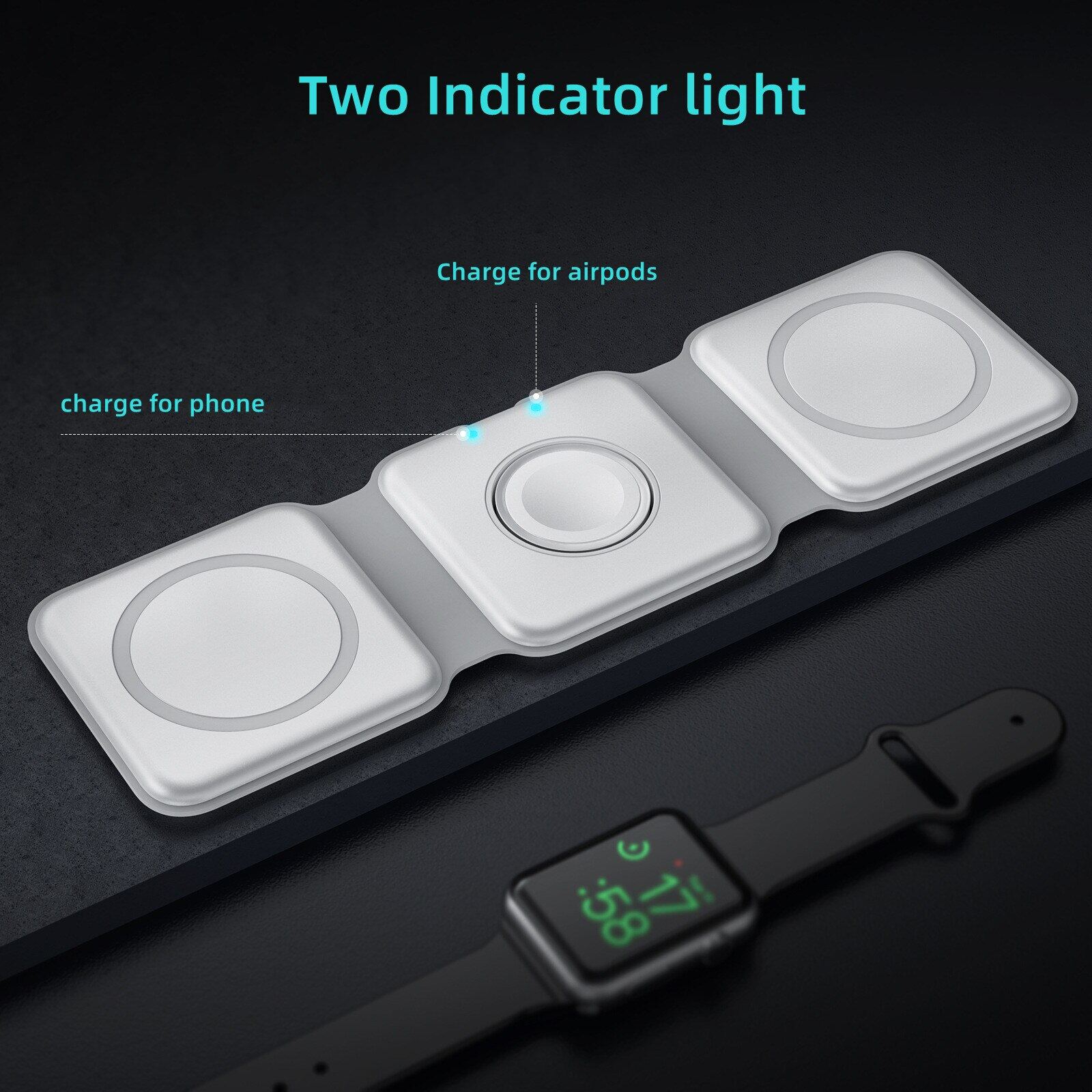 3 in 1 Wireless Charger,The wireless charger can charge for mobile phone/ airpods/iwatch