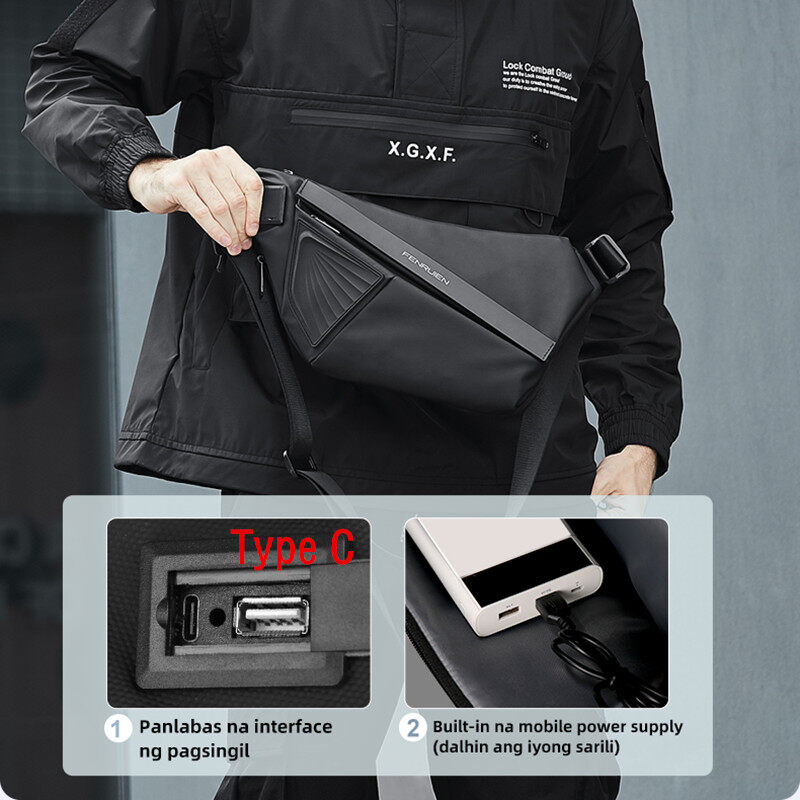 LOSELF- FENRUIEN Waterproof 8-inch Chest Bag Male Multifunction Small Storage Shoulder Bag Casual Men's Sling Messenger Bag Fashion Casual Crossbody Pouch Bags for Men