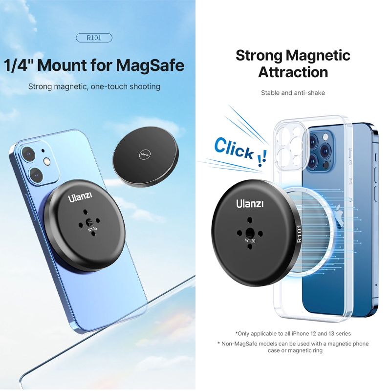 Ulanzi R101 — (1/4" Mounting Plate with Strong Magnetic Phone Mount Compatible with MagSafe)
