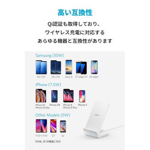 Anker PowerWave 7.5 Stand Wireless Charger Qi Certification iPhone 12/12 Pro Galaxy Various Supports Up to 10W Output (White)