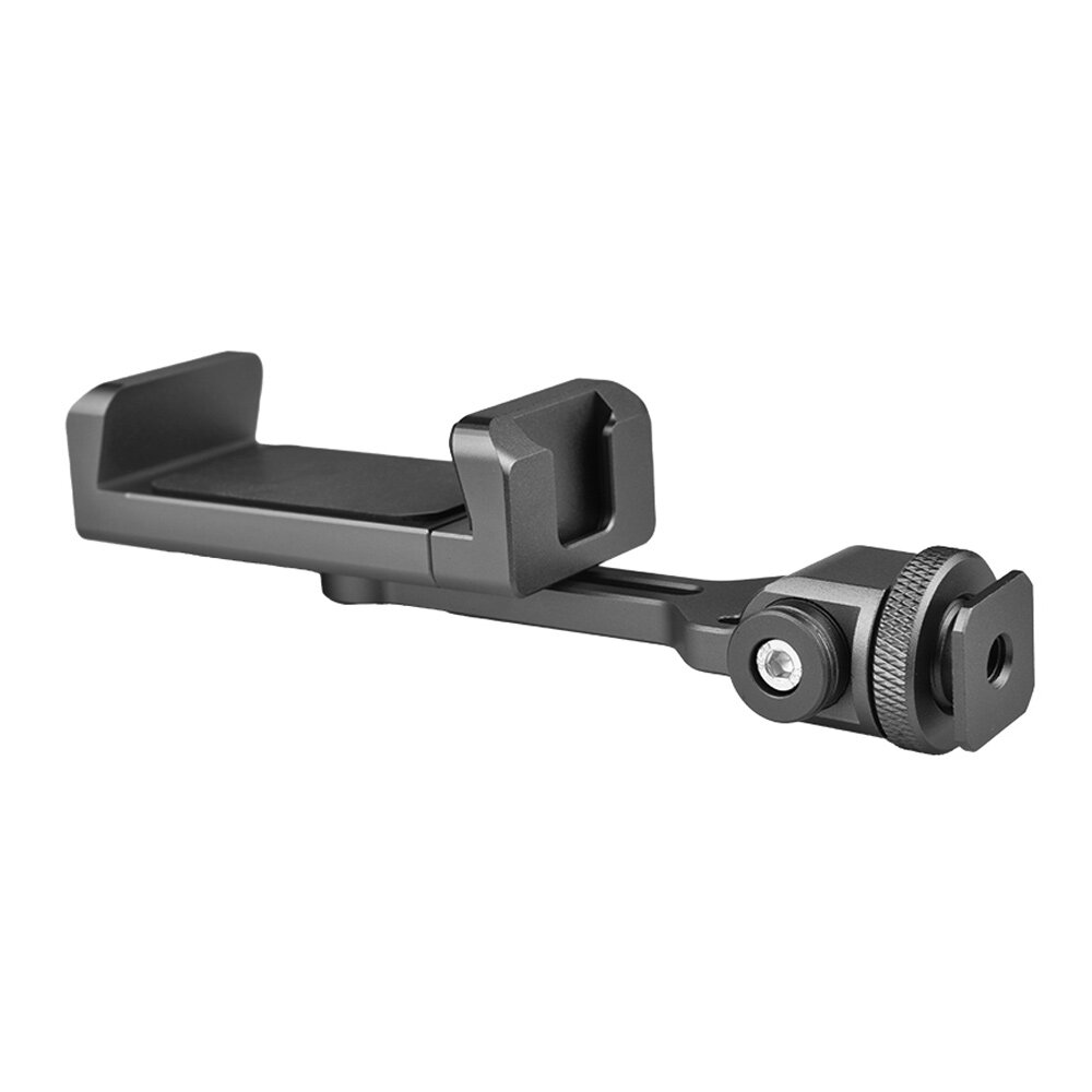Bottom Cold shoe adapter and 1/4 inch screw hole enables you to install the phone holder to camera or tripod conveniently.