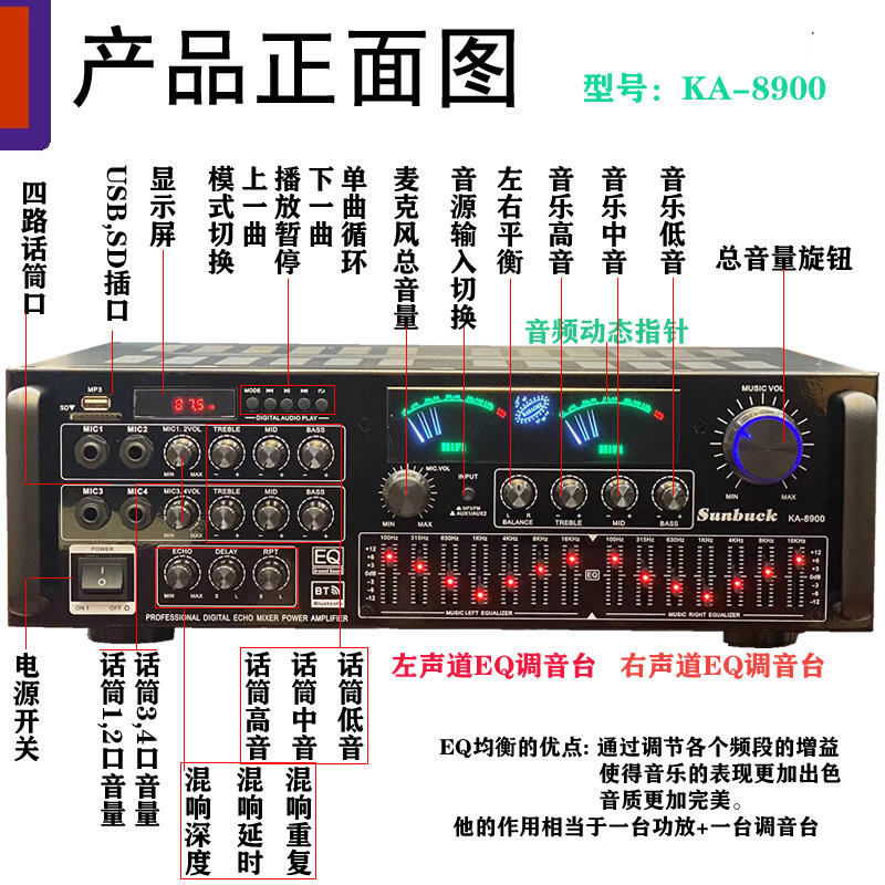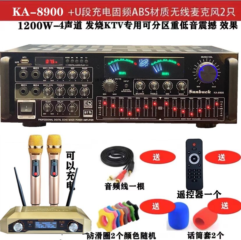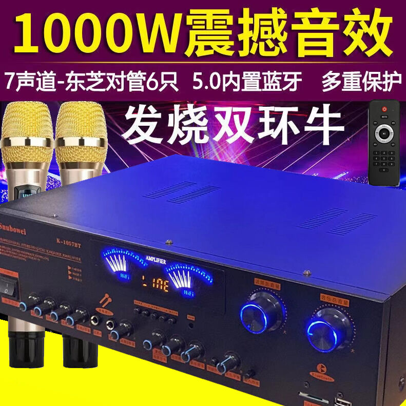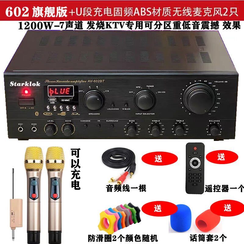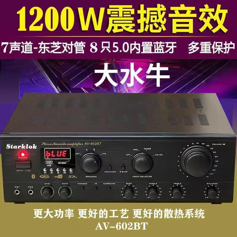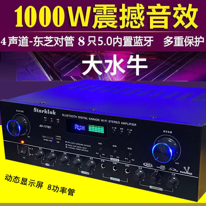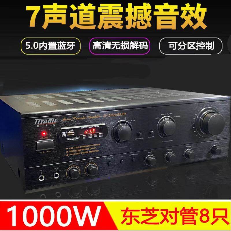 7 Channel Power Amplifier Home KTV High Power Professional Stage Audio Bluetooth Karaoke Computer SD Reverb Amplifier