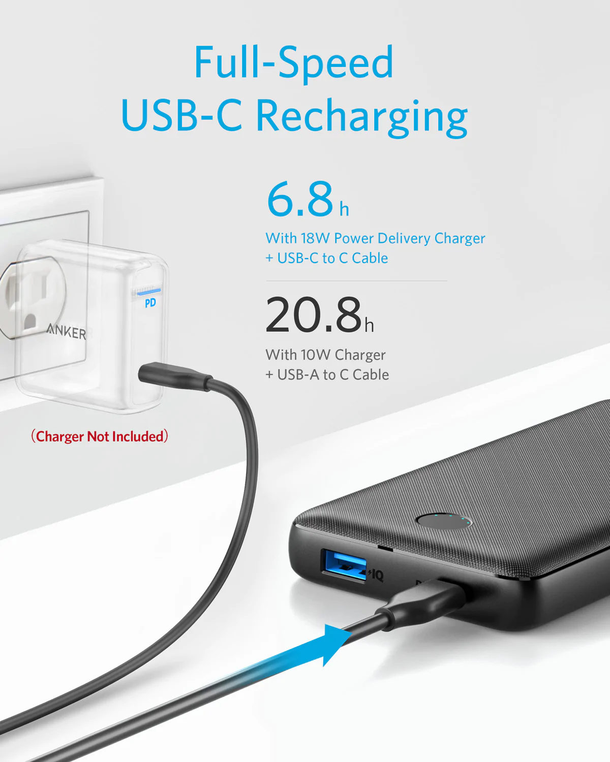 Anker Portable Charger, PowerCore Essential 20000mAh Power Bank with PowerIQ Technology and USB-C (Input Only), High-Capacity External Battery Pack Compatible with iPhone, Samsung, iPad, and More.