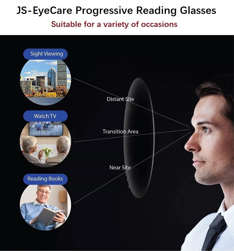 (Gift for Parents) JS-EyeCare TR90 Multifocal Progressive Presbyopic Presbyopia Reading Glasses Anti Blue Ray Light Anti Glare Computer Spectacles (JS-019)
