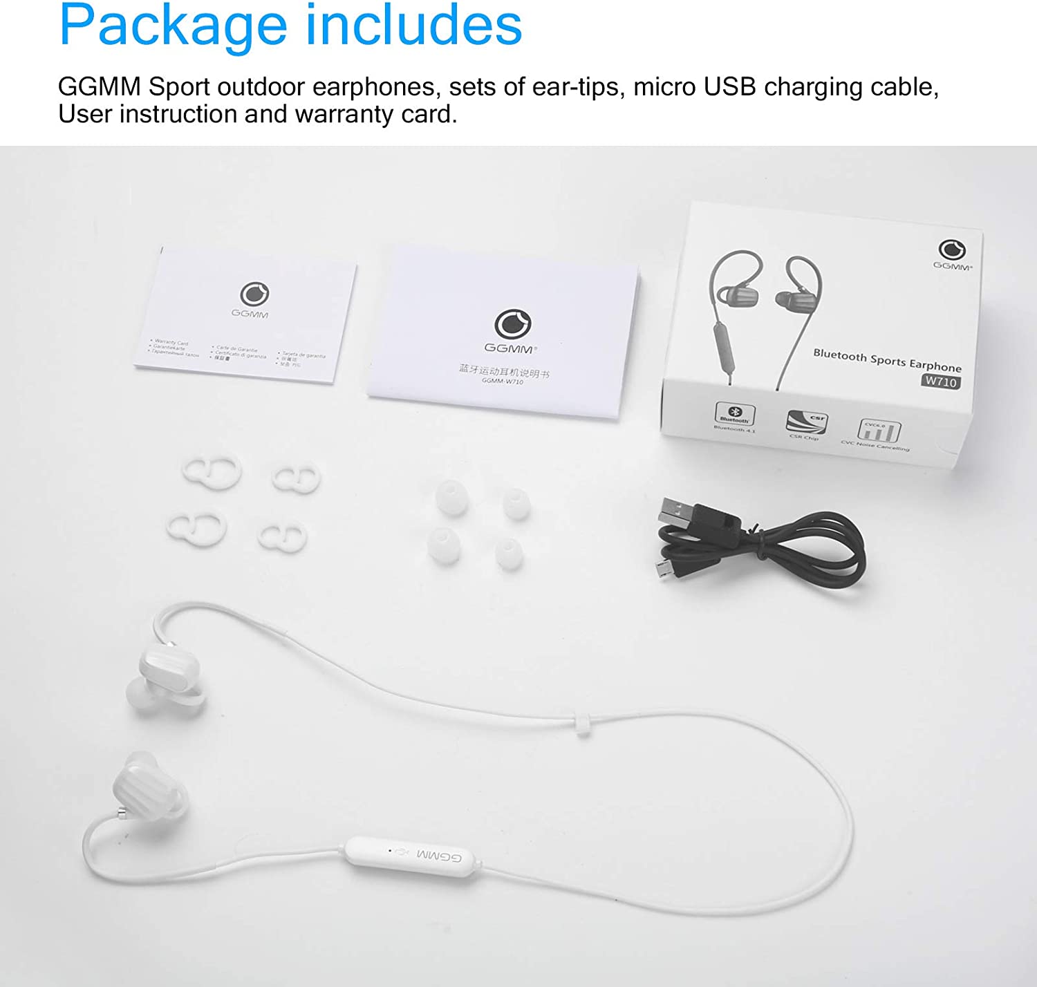 GGMM W710 Wireless Bluetooth Sport Earphone With Remote Control Microphone Black White Noise Reduction In Ear Hook Noise Cancelling Comfortable 7Hrs Waterproof High Quality Sound Earbud Hook HD Clarit