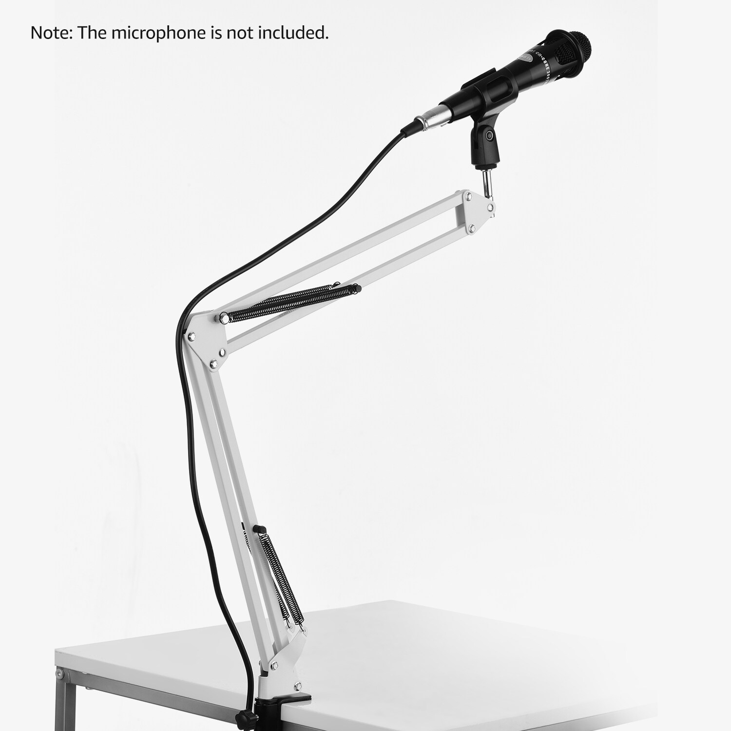 The microphone stand is designed for microphone mounting on table via the mount adapter clipping the edge of desk, as the maximum clamping distance is 5.5cm.