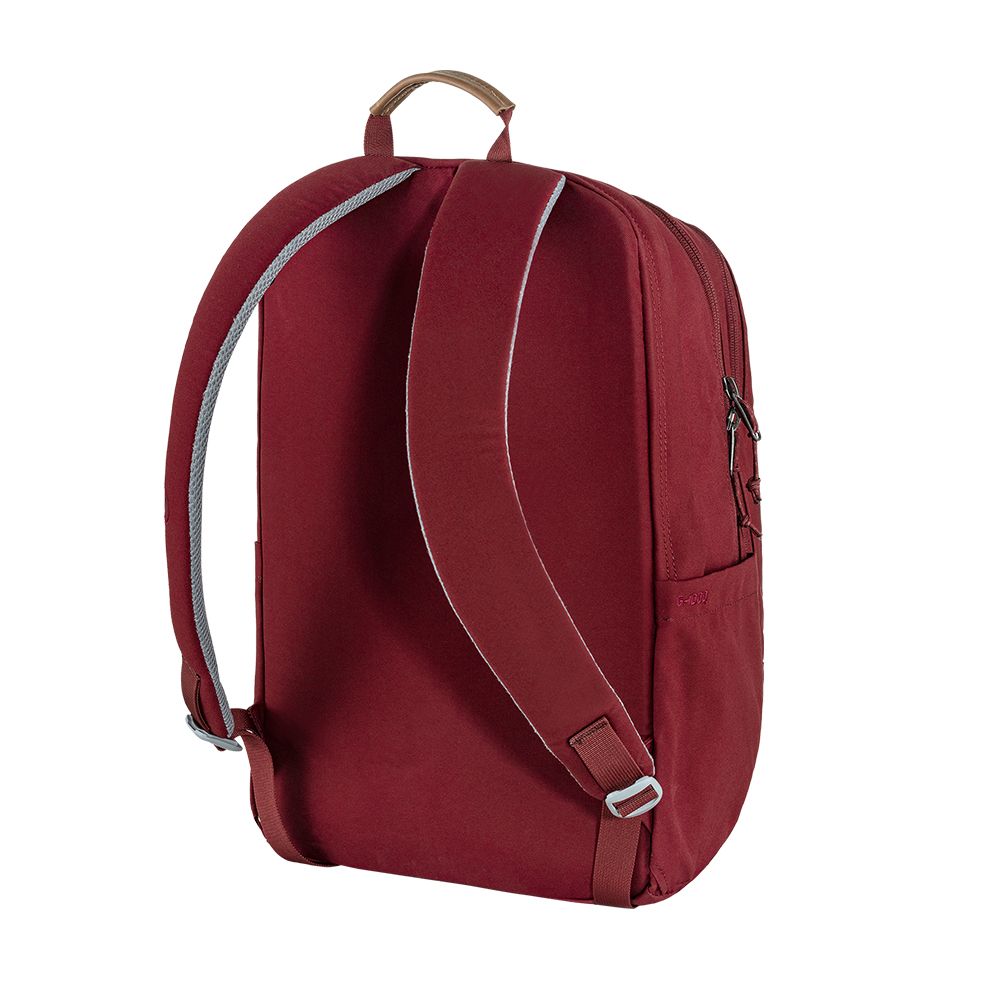 Simple and durable everyday backpack made from durable G-1000 HeavyDuty Eco in recycled polyester and organic cotton. Simple design and practical details make it perfect for commuting or everyday outings. It has a separate, padded pocket for a laptop computer (up to 15 inches in size). A little fleece-lined pocket with a zipper has room for sunglasses, a phone etc. Two spacious zippered compartments with internal pockets give flexibility when you want to keep your gear organised. There is also a zippered front pocket and two side pockets for drink bottles and other items you want to keep close to hand. Comfortable padded shoulder straps and foam frame sheet. Handle with leather grip.